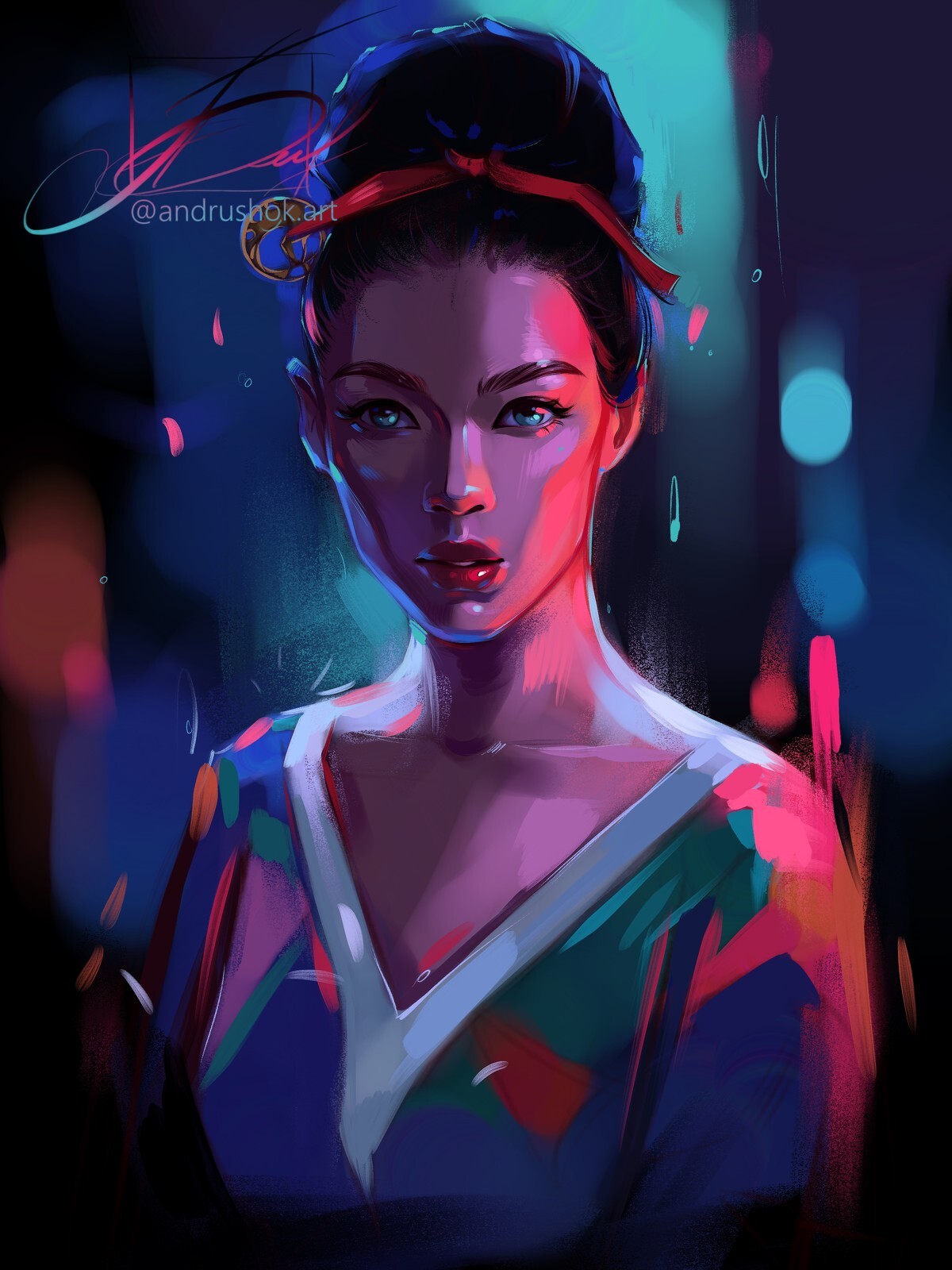 На этом мастер-классе вы, под руководством Яны Андрушок, нарисуете длительную полноценную работу в стиле «Масло» с нуля. Это будет портрет Саюри из фильма «Мемуары Гейши» со сложным цветным освещением.