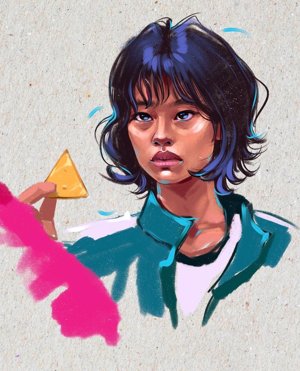 Сложность была в том, чтобы уловить характер и похожесть с референсом. В целом мне понравилась новая техника, это что-то необычное, интересное, заставило прям задуматься где какой мазок сделать, мне понравилось то, что у меня получилось, учитывая что с этой техникой я столкнулась впервые